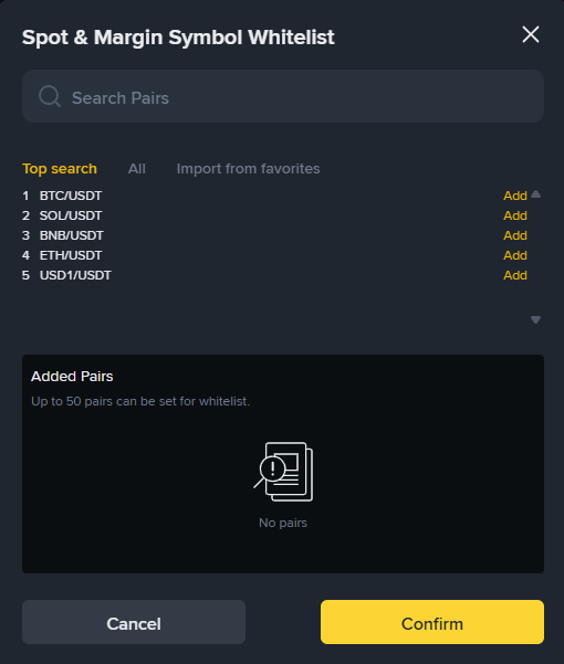 💡 Tip: Symbol whitelist adds an extra layer of security by limiting which assets can be traded with this API key.
